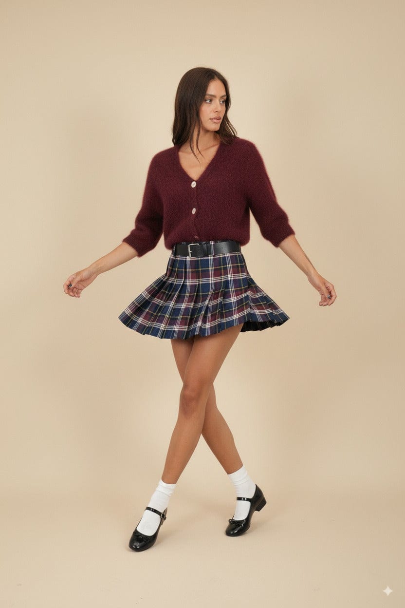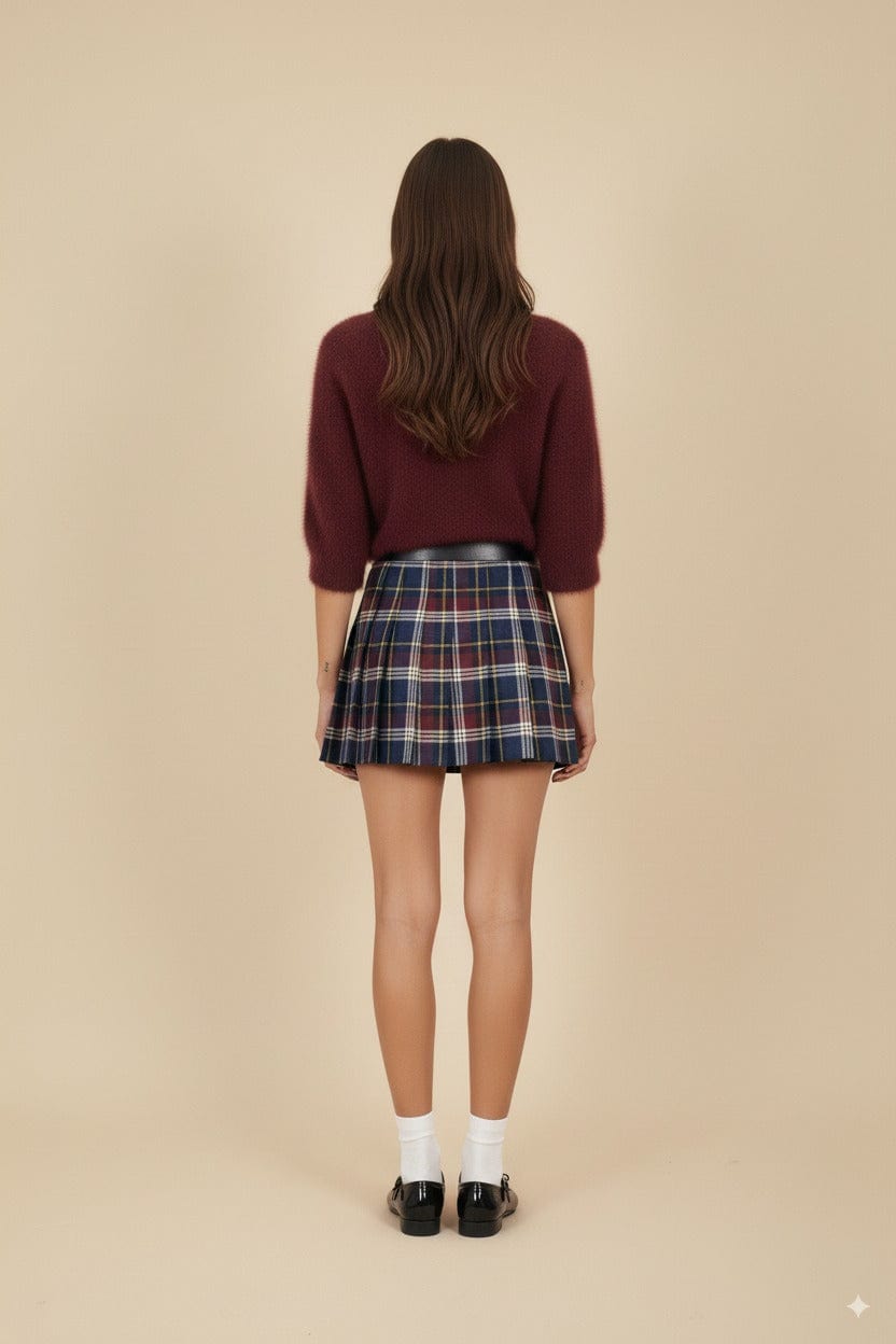 Gonna mini quadri pieghe