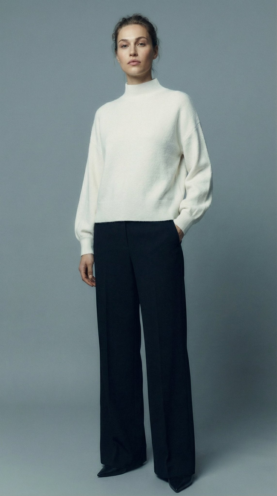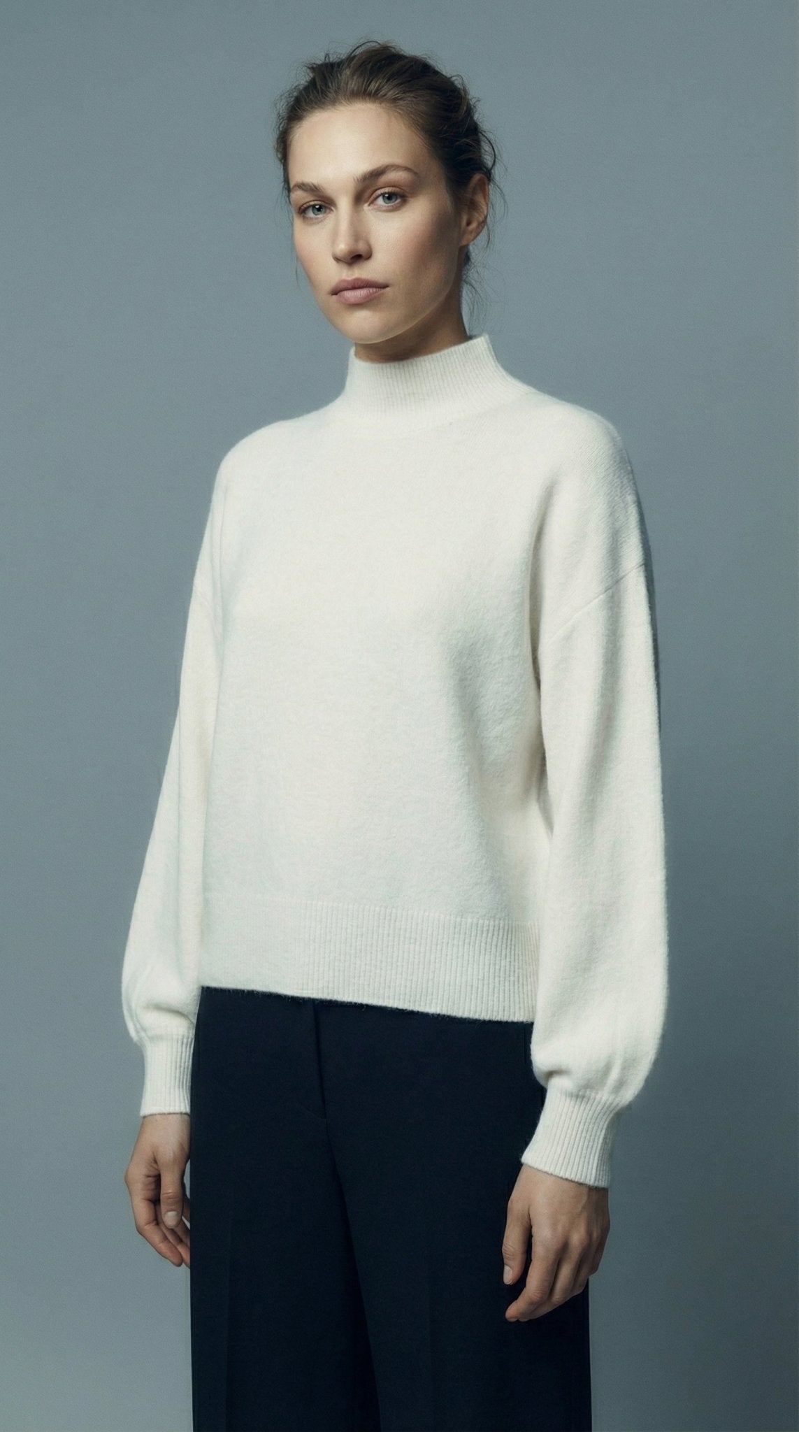 Maglia collo alto baby alpaca polsino pince