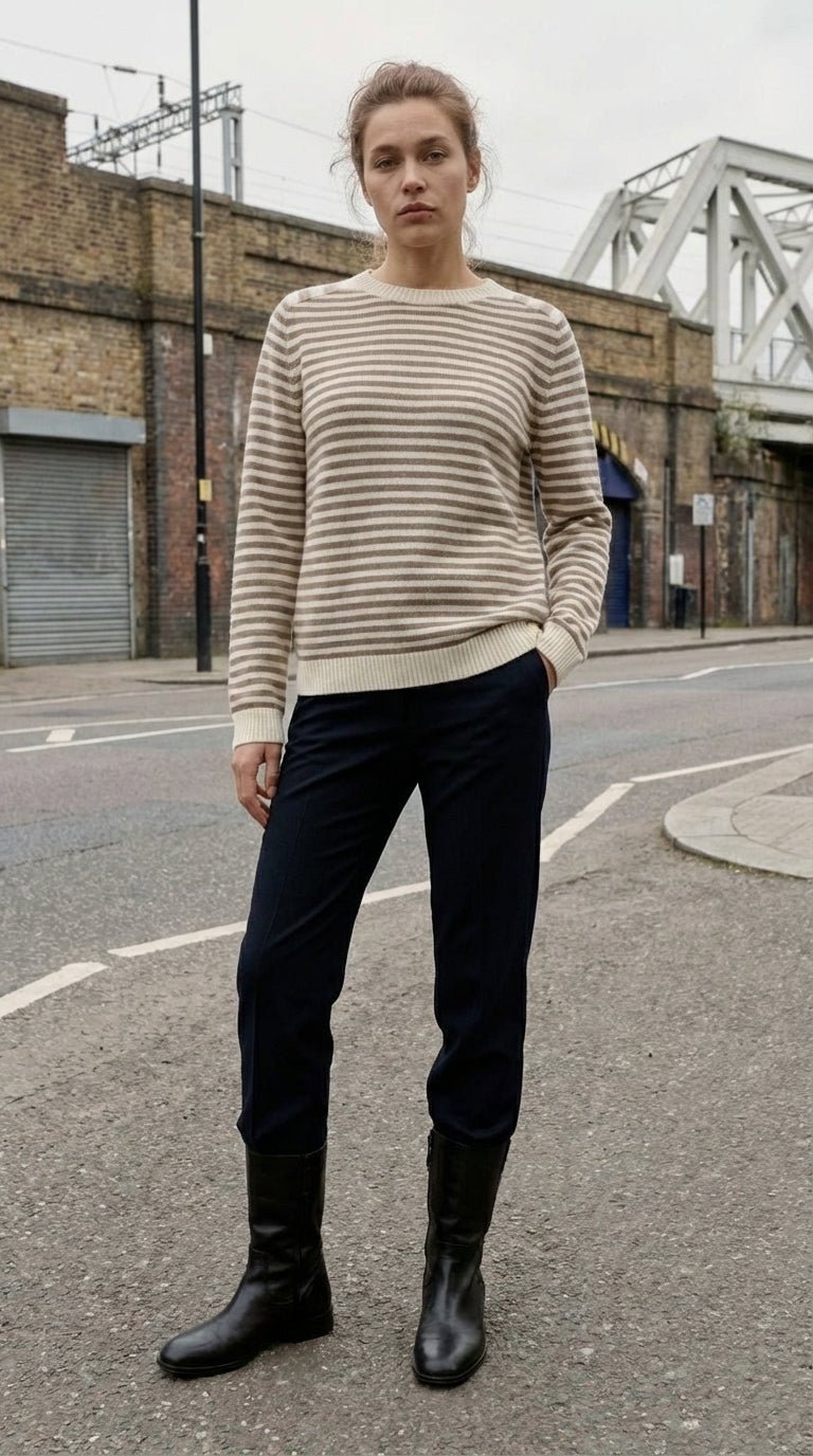 Maglia riga girocollo 100% lana afa 6003