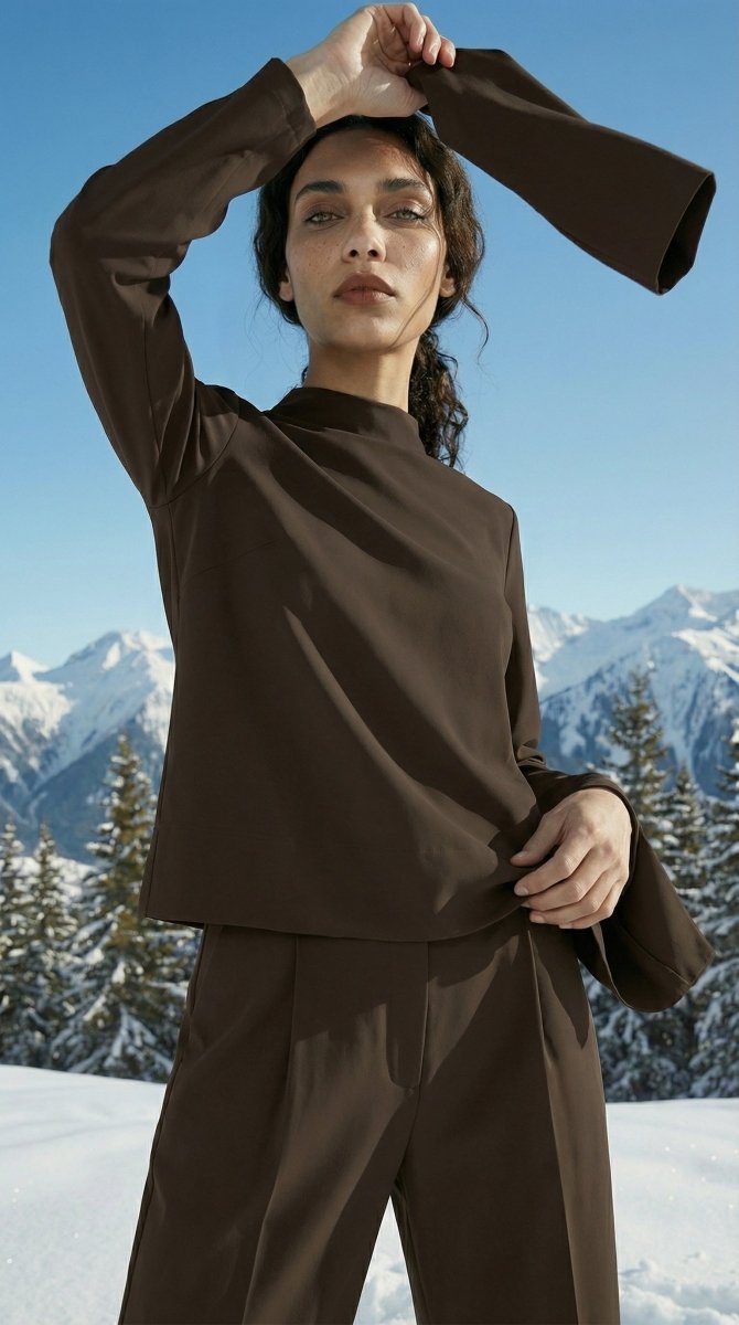 Tunika mit Vulkankragen und Schlitzen