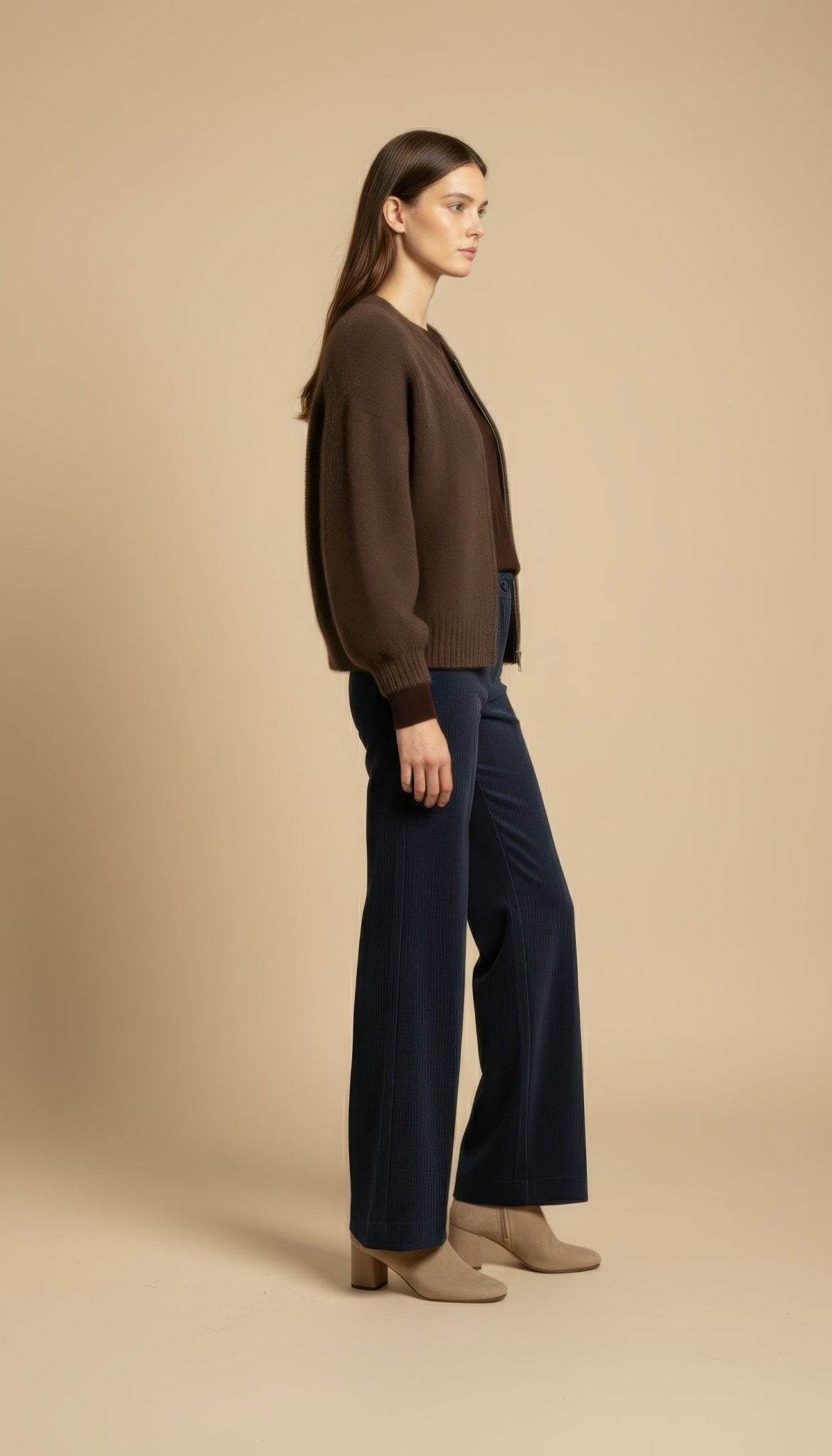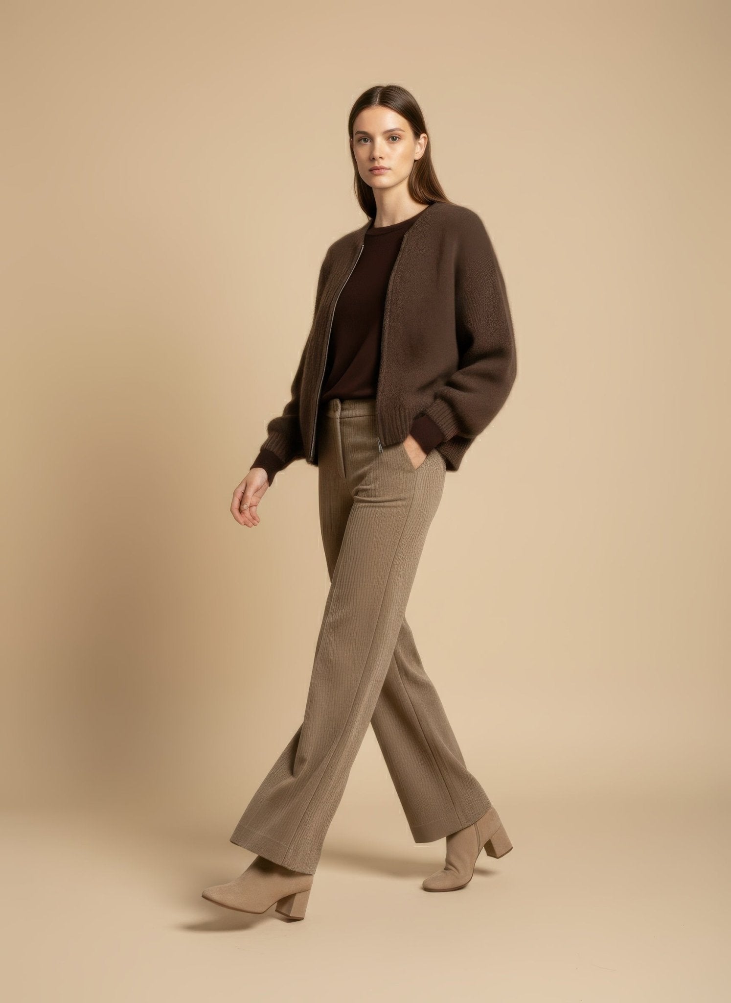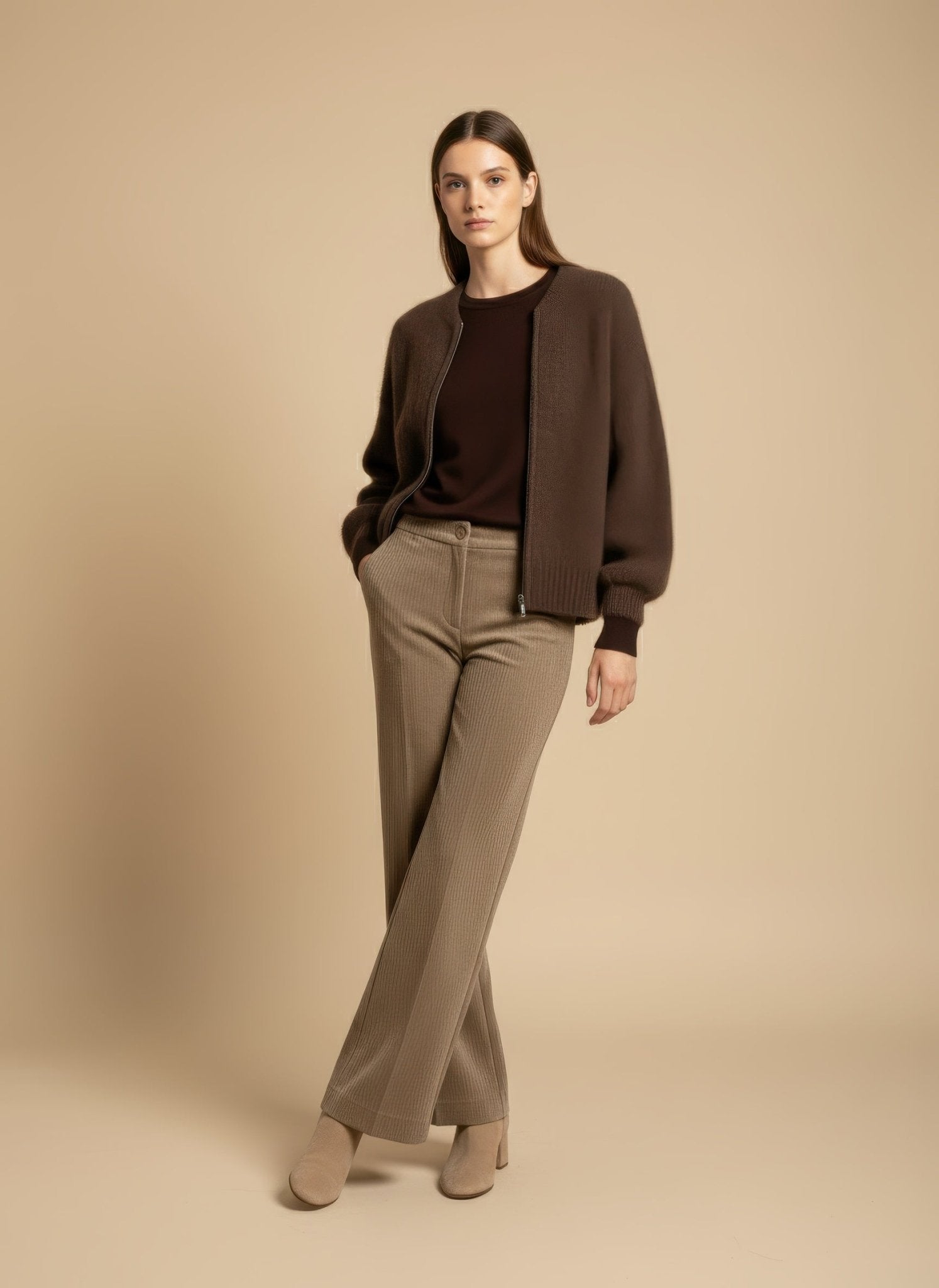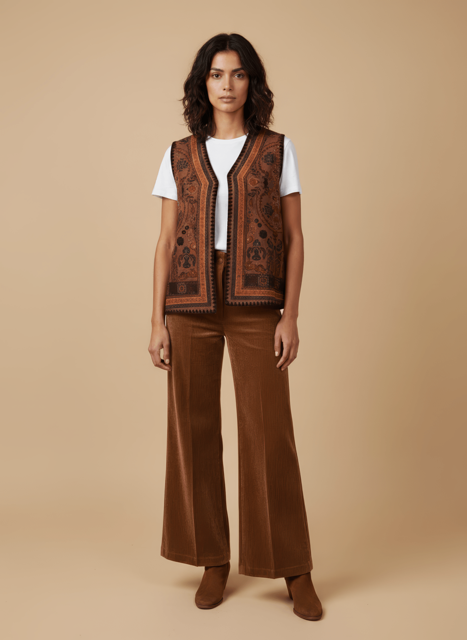 Il velluto avvolge la silhouette con una carezza calda, la superficie cattura la luce ad ogni passo. La gamba ampia segna un ritmo elegante, si apre e si muove con naturale leggerezza, creando un volume raffinato che non appesantisce. In città come in serate che chiedono presenza, accompagna la postura senza forzare, lasciando libertà ai gesti. Ogni cucitura racconta cura e semplicità, il risultato è un capo che invita al tocco e alla postura, pronto a trasformare il quotidiano in un istante di stile.