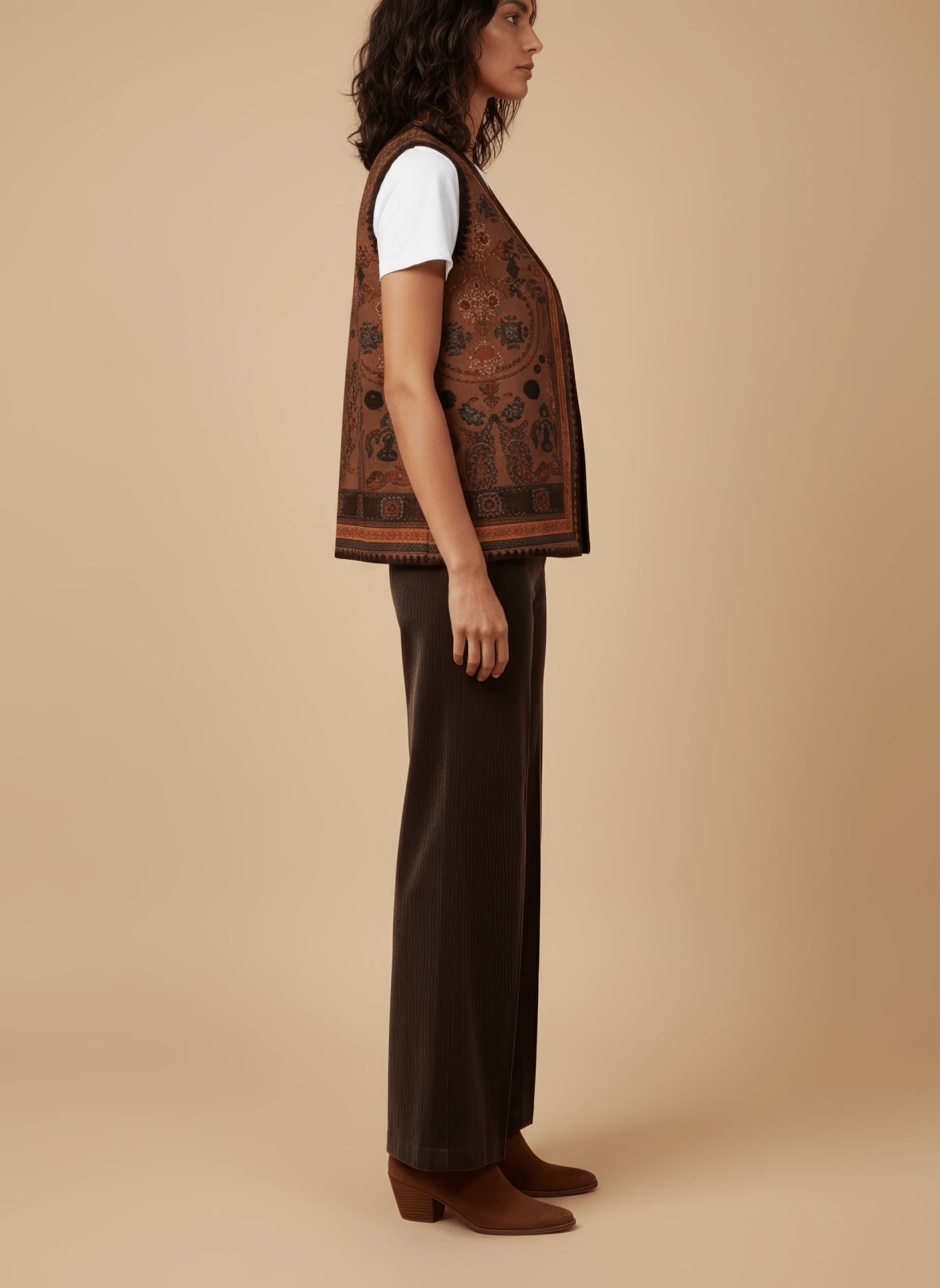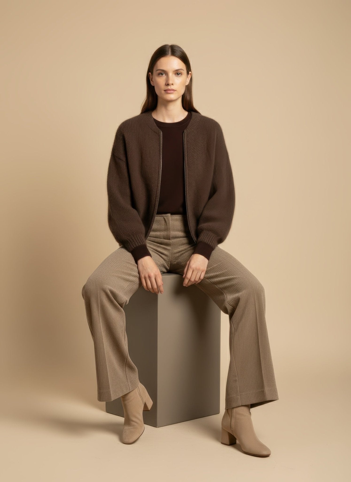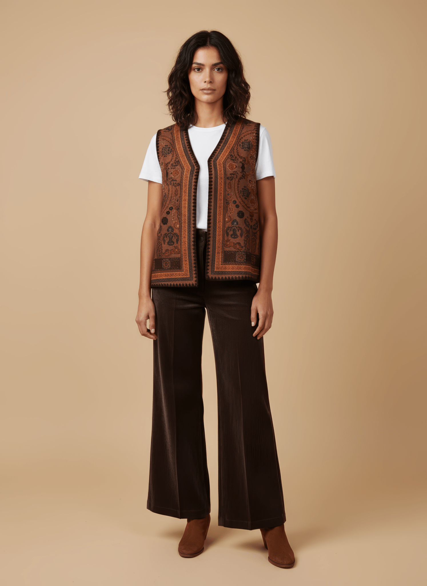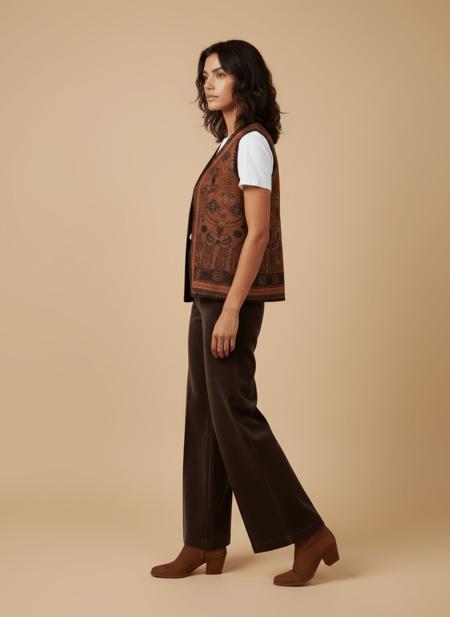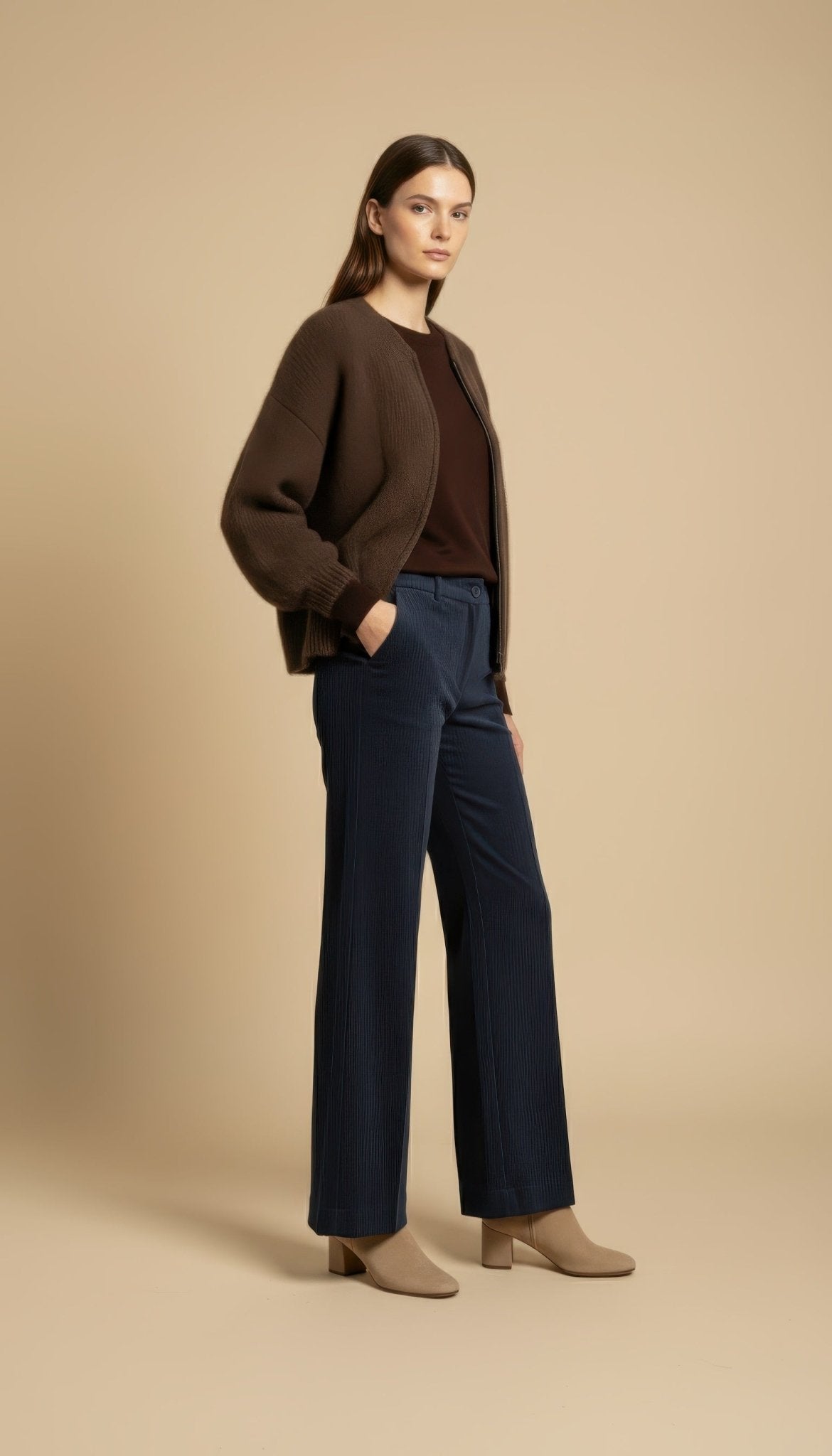 Il velluto avvolge la silhouette con una carezza calda, la superficie cattura la luce ad ogni passo. La gamba ampia segna un ritmo elegante, si apre e si muove con naturale leggerezza, creando un volume raffinato che non appesantisce. In città come in serate che chiedono presenza, accompagna la postura senza forzare, lasciando libertà ai gesti. Ogni cucitura racconta cura e semplicità, il risultato è un capo che invita al tocco e alla postura, pronto a trasformare il quotidiano in un istante di stile.