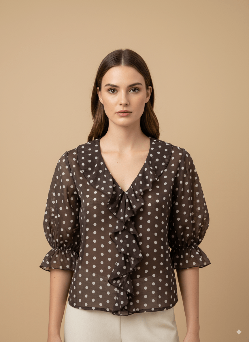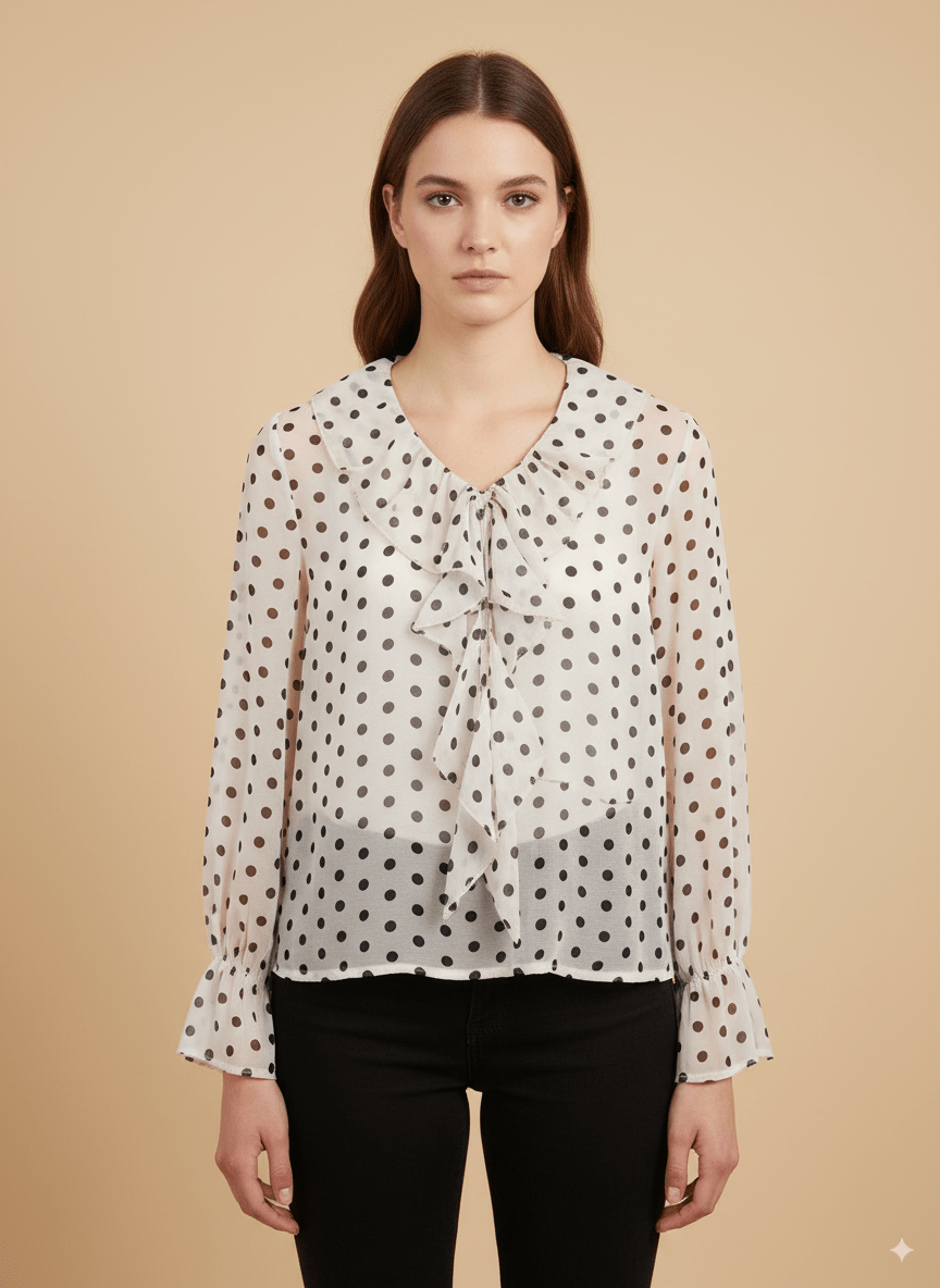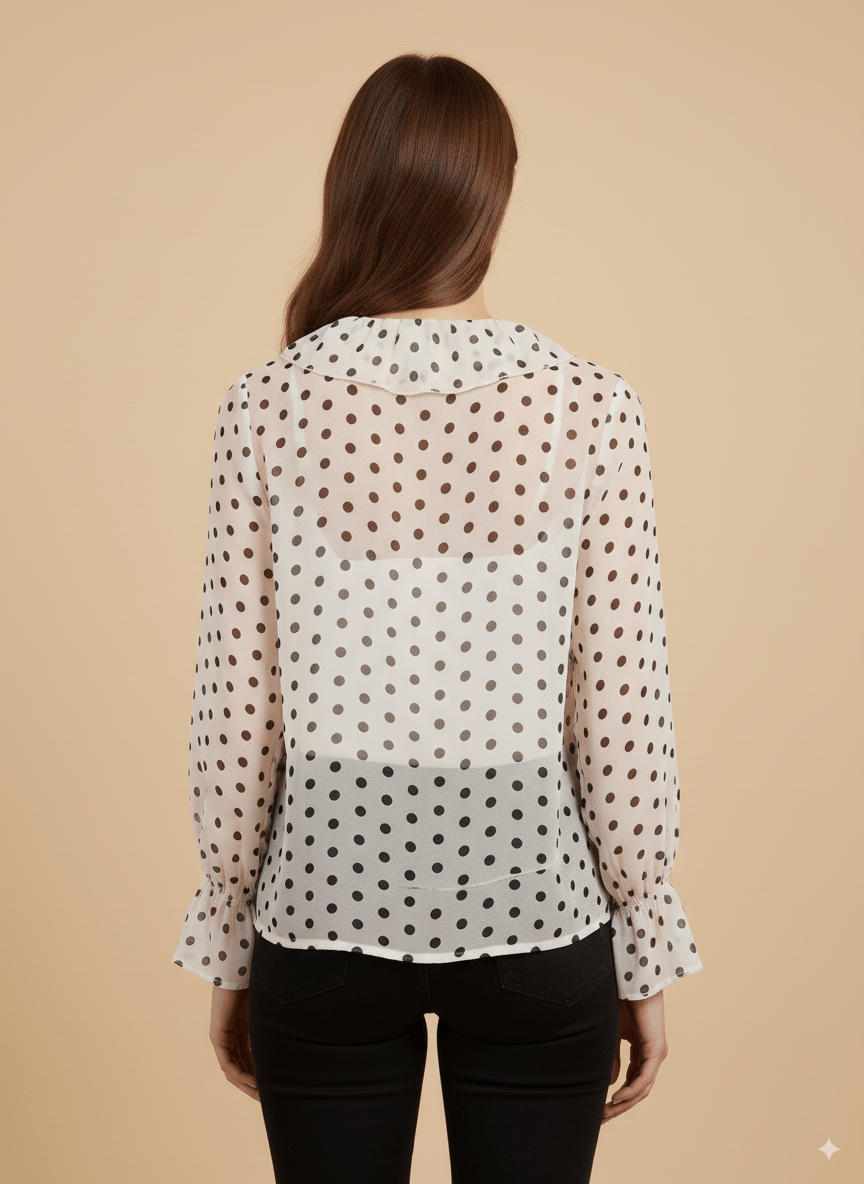 Pois che danzano su una scia di rouche, leggermente audace e sempre discreta.