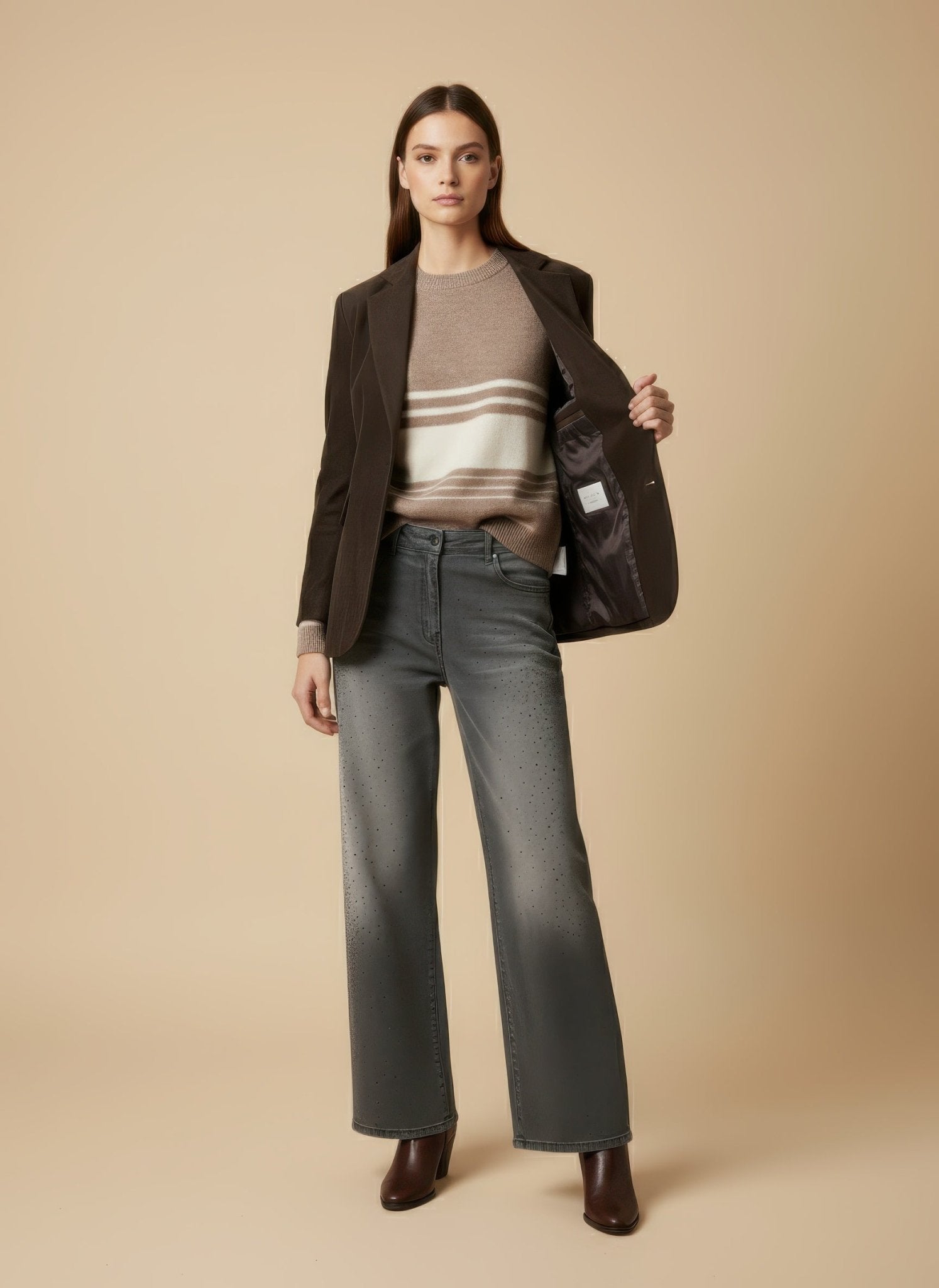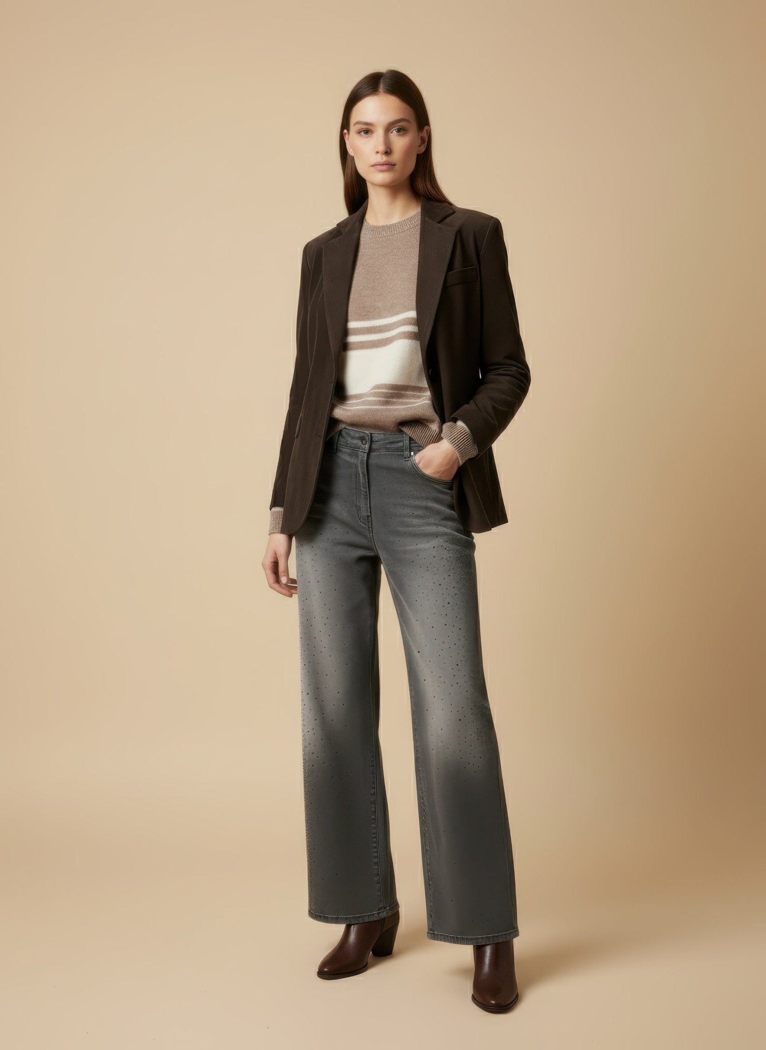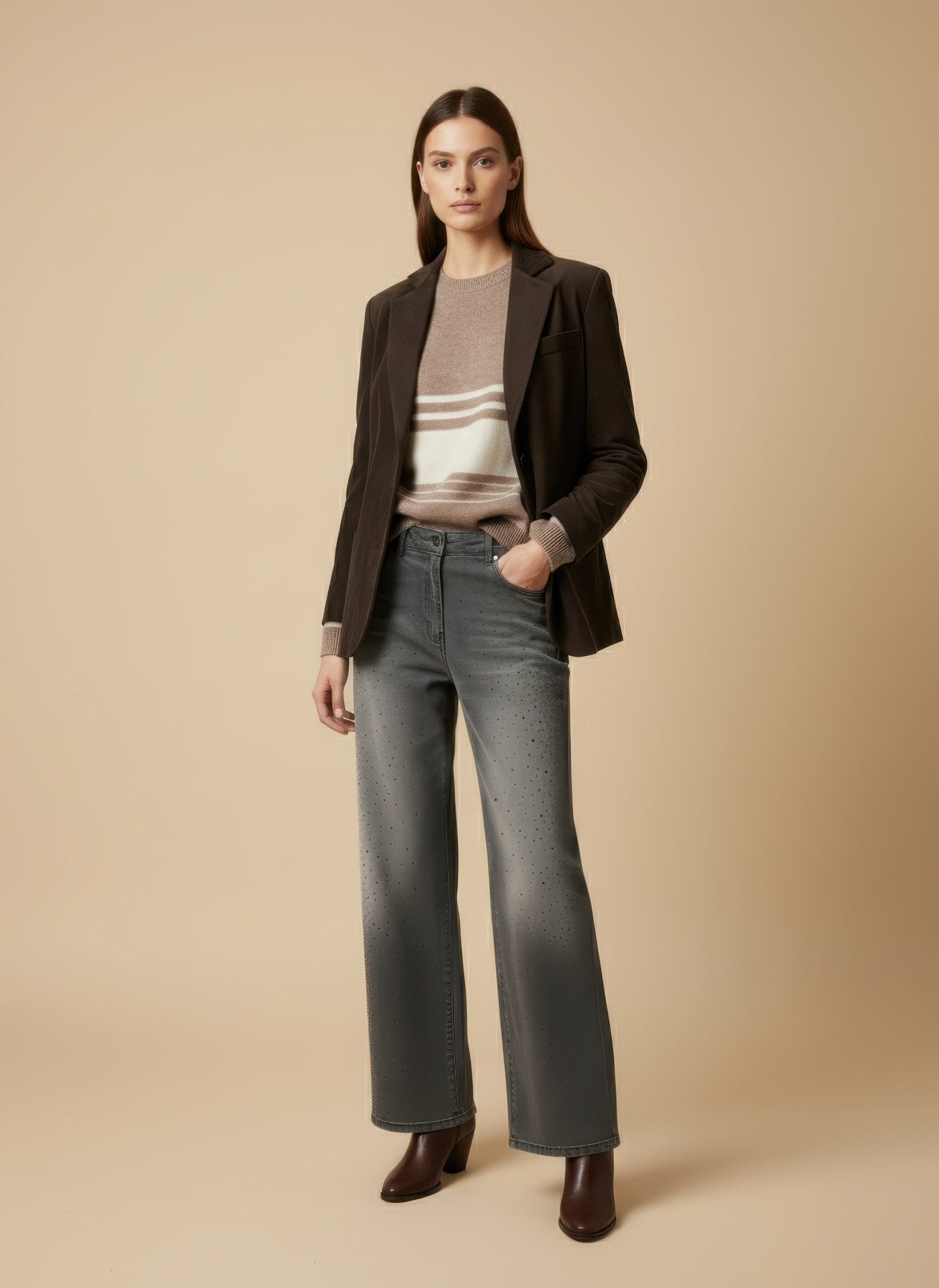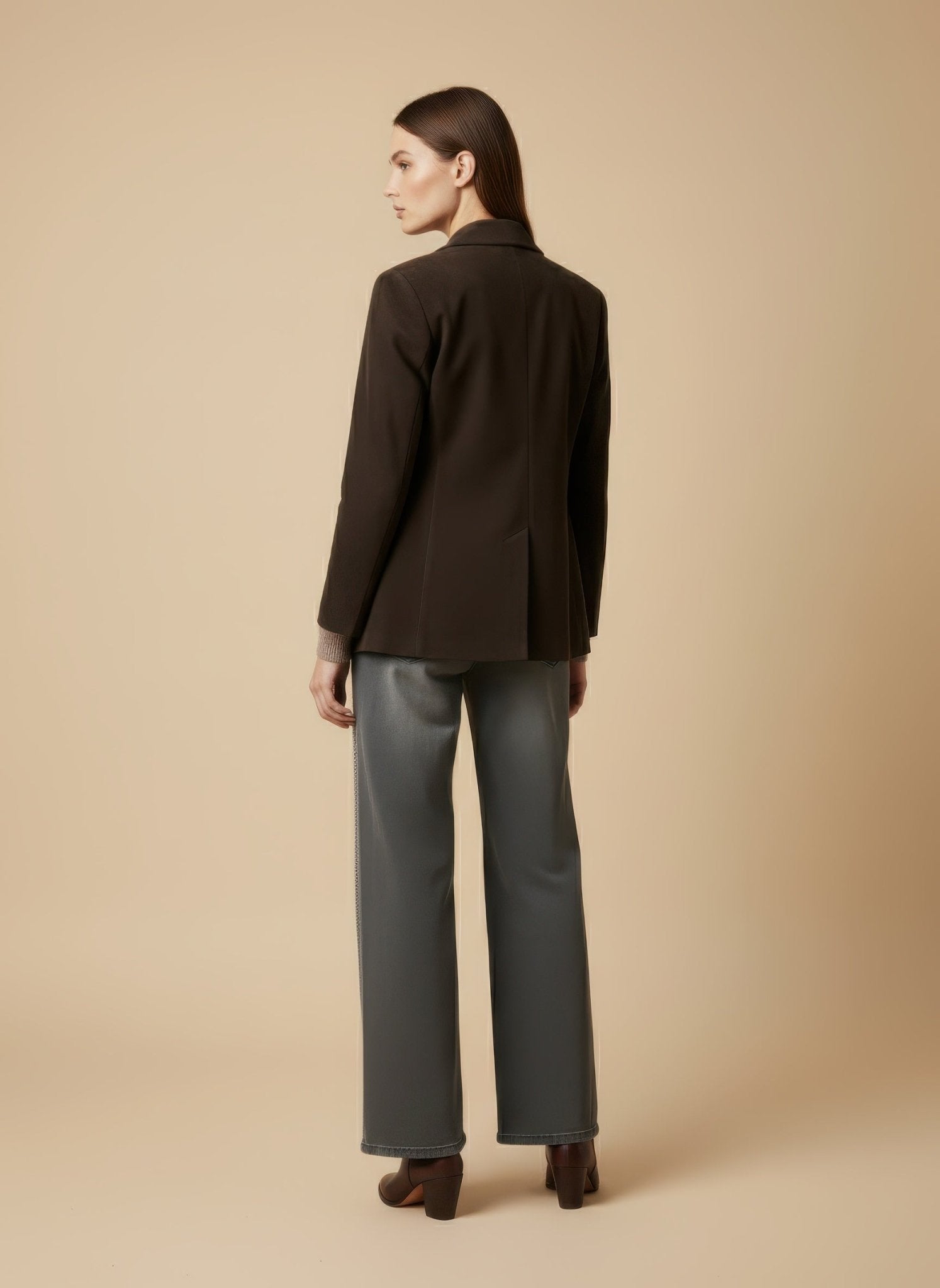 Il velluto scivola sulla pelle come una carezza calda, trattenendo la luce e restituendo profondità al movimento. La linea sagomata valorizza il busto senza costringere, mentre i due bottoni segnano il centro con naturale equilibrio. Si porta in città di giorno, si trasforma in complice di una sera raffinata; la stoffa racconta una texture morbida e compatta, i fianchi si muovono liberi e il colletto incornicia il viso con discreta autorità. Ogni dettaglio sussurra cura e carattere, invitando a un gesto misurato ma sicuro.