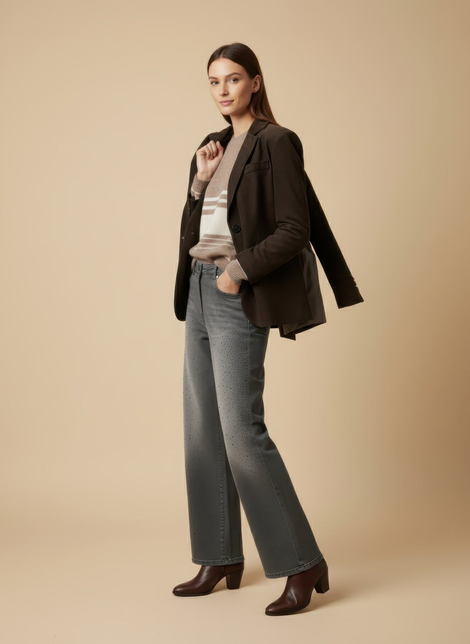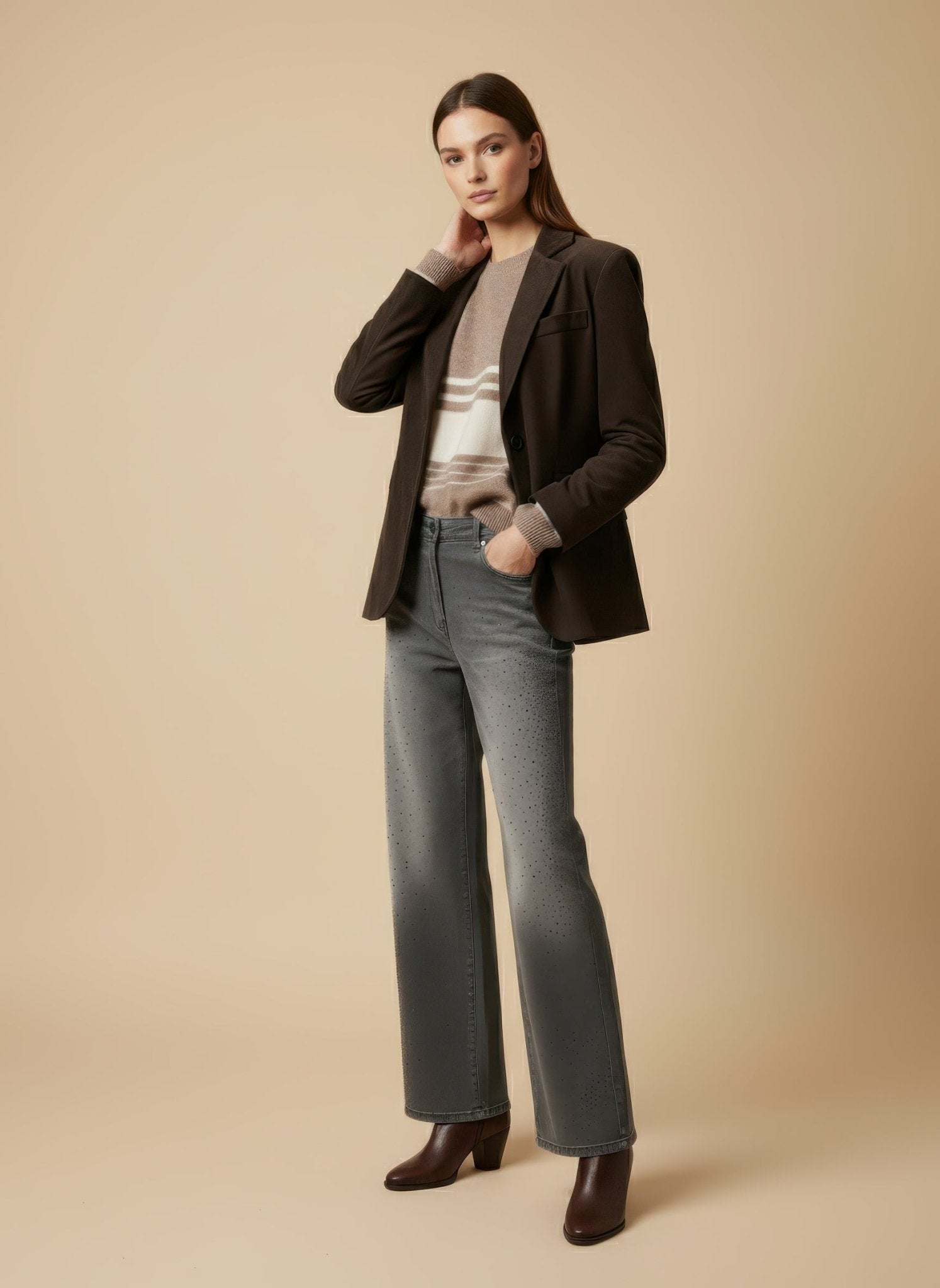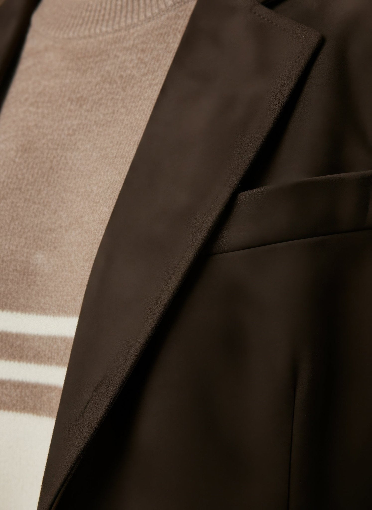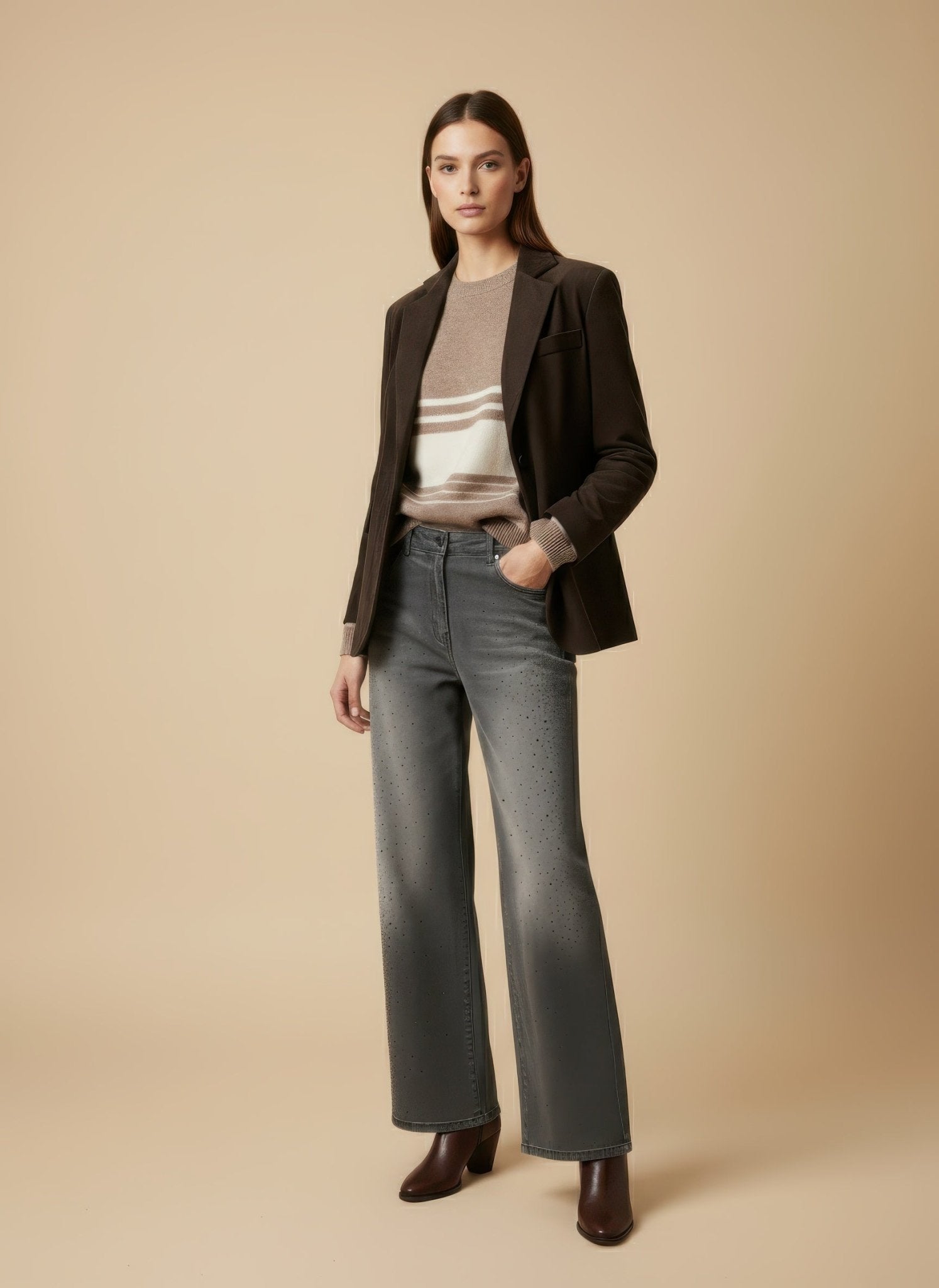 Il velluto scivola sulla pelle come una carezza calda, trattenendo la luce e restituendo profondità al movimento. La linea sagomata valorizza il busto senza costringere, mentre i due bottoni segnano il centro con naturale equilibrio. Si porta in città di giorno, si trasforma in complice di una sera raffinata; la stoffa racconta una texture morbida e compatta, i fianchi si muovono liberi e il colletto incornicia il viso con discreta autorità. Ogni dettaglio sussurra cura e carattere, invitando a un gesto misurato ma sicuro.