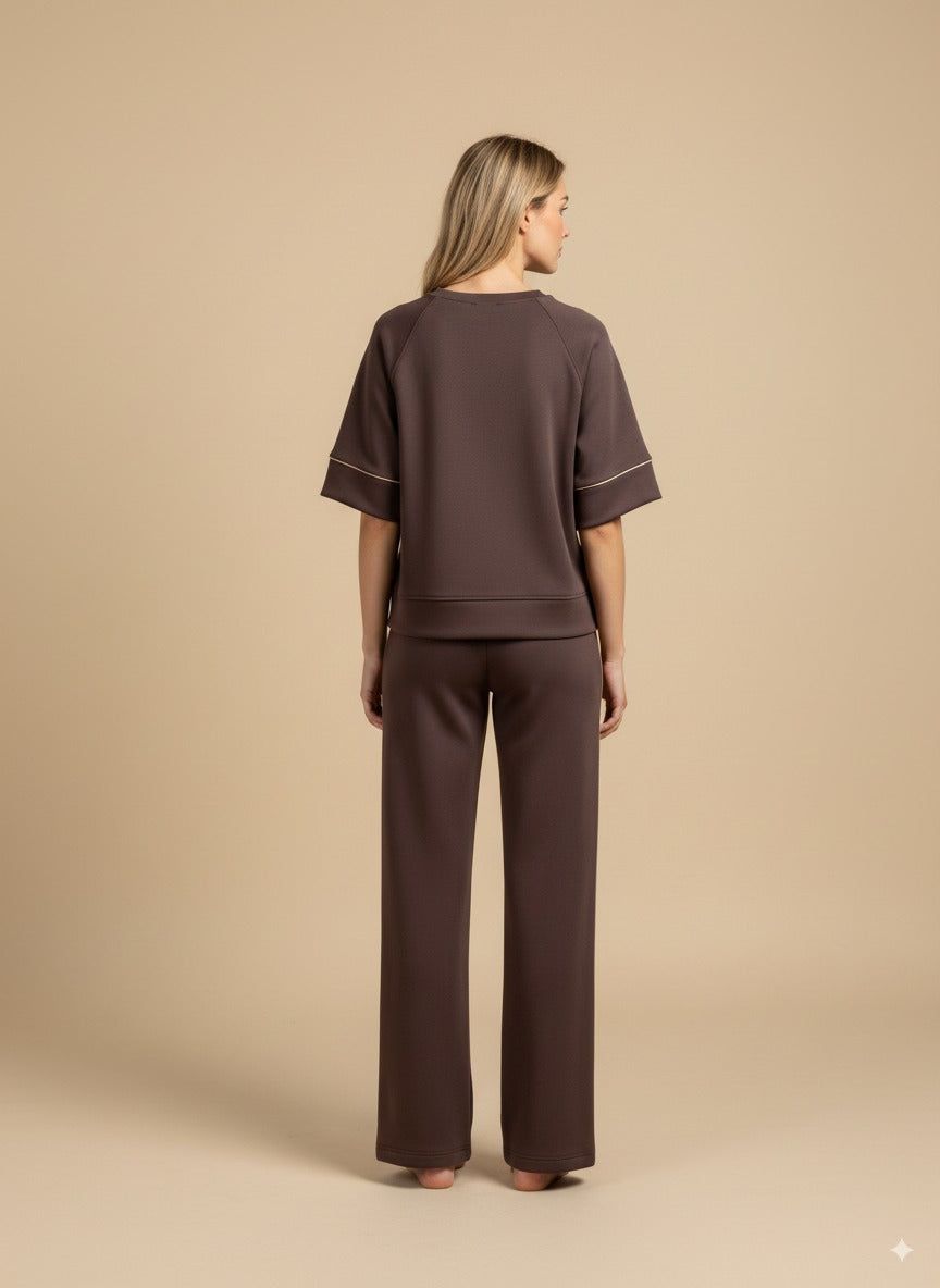 Pantalone palazzo neoprene piping