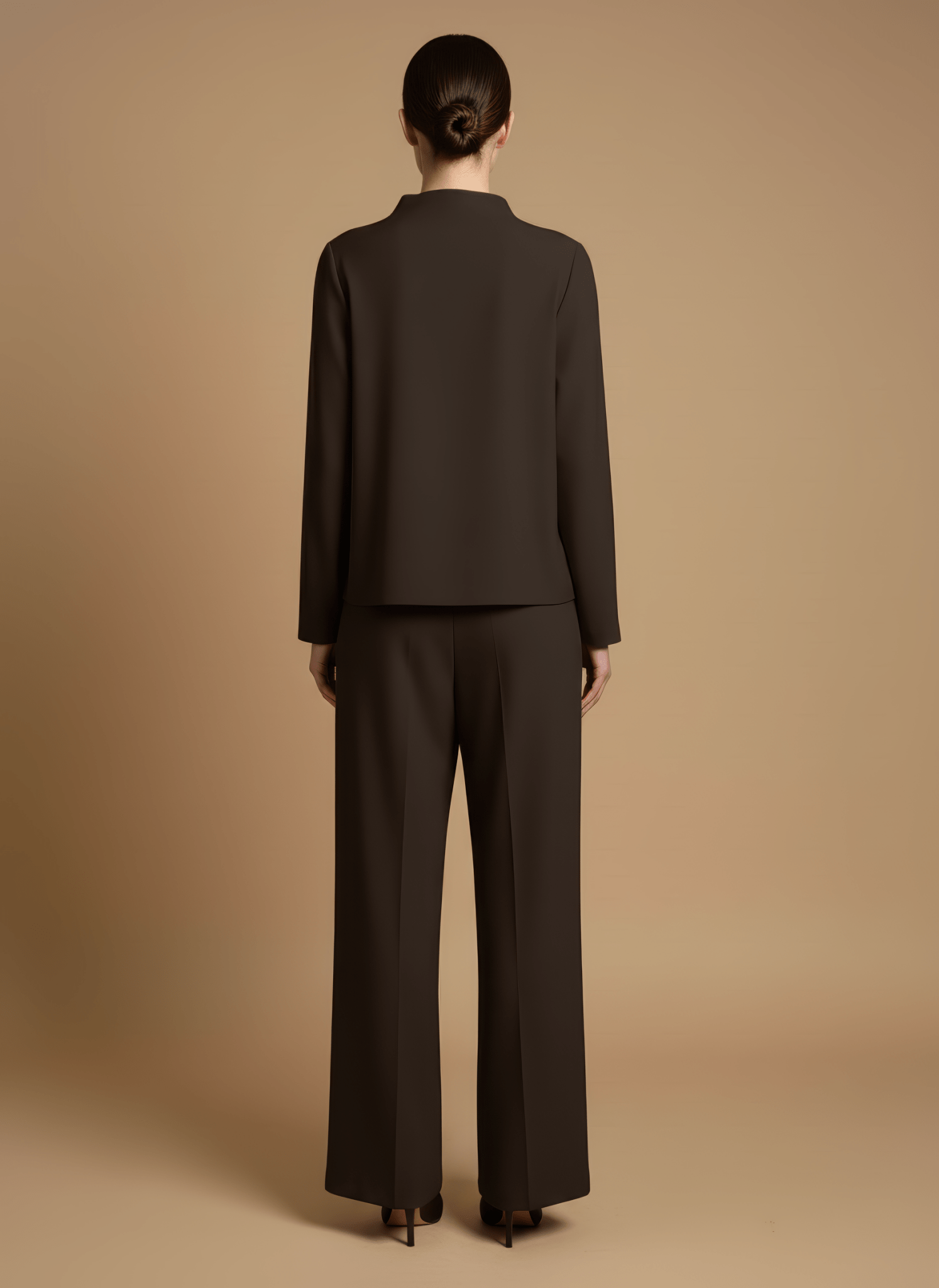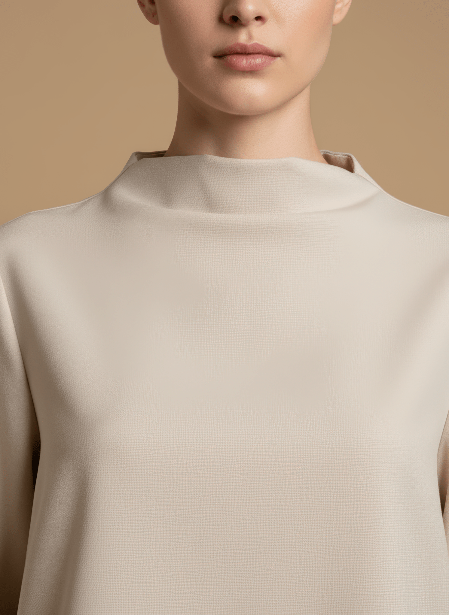 Leggera e fluida, la casacca scivola sul corpo come una promessa di comfort. Il collo vulcano incornicia il viso con sobria presenza, mentre i spacchetti laterali introducono un gioco di texture e luce a ogni movimento. Il tessuto morbido accarezza la pelle, il taglio morbido valorizza la silhouette senza costrizioni; si abbina con naturalezza a denim, pantaloni sartoriali o una gonna per un look urbano dal respiro raffinato.