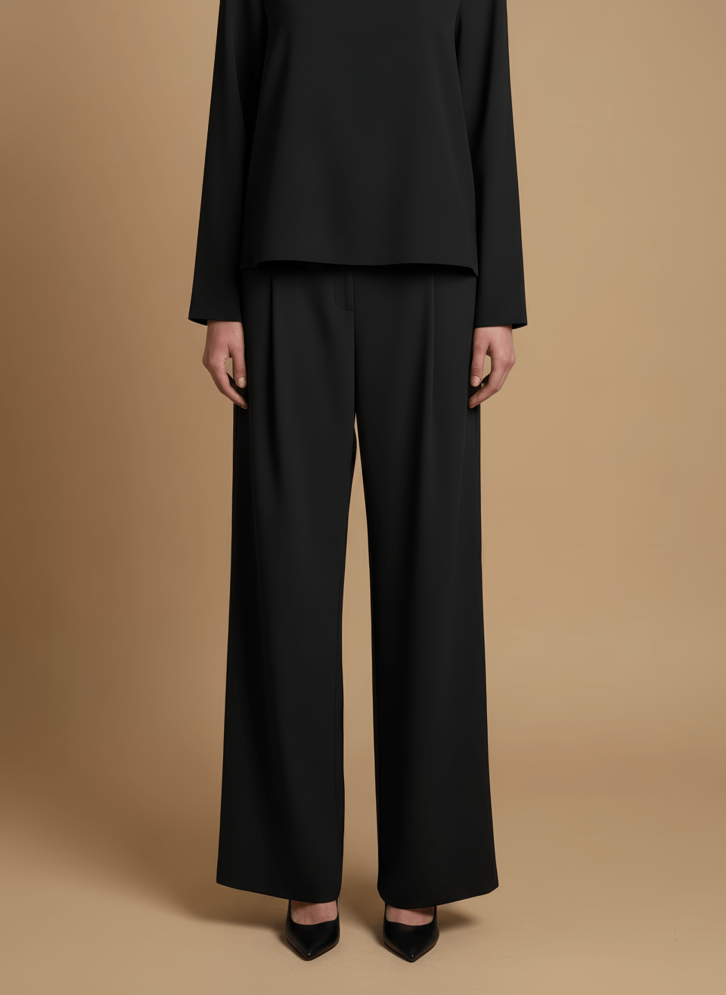 Si muove con passo leggero e sguardo deciso, disegnando un profilo contemporaneo tra giorno e sera.