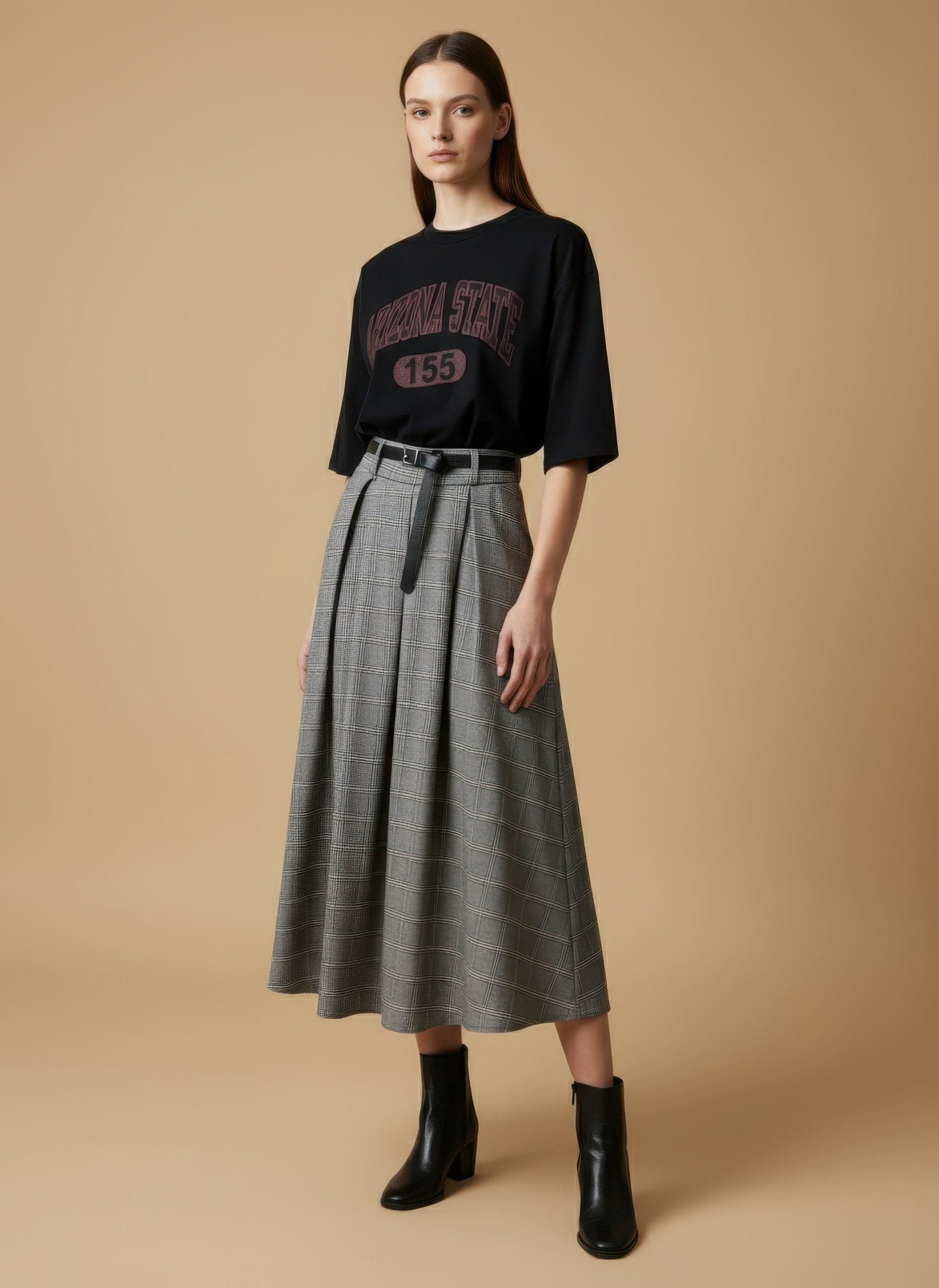 La T-shirt scivola sulla pelle con un tocco morbido, leggero e avvolgente. Il taglio essenziale segue la silhouette senza costringerla, lasciando libertà di movimento ad ogni passo. Si porta con jeans, short o una gonna leggera, suggerendo un look quotidiano curato e senza sforzo. Le linee pulite e i dettagli minimali raccontano una presenza misurata, pronta a trasformare la routine in un piccolo gesto di stile.